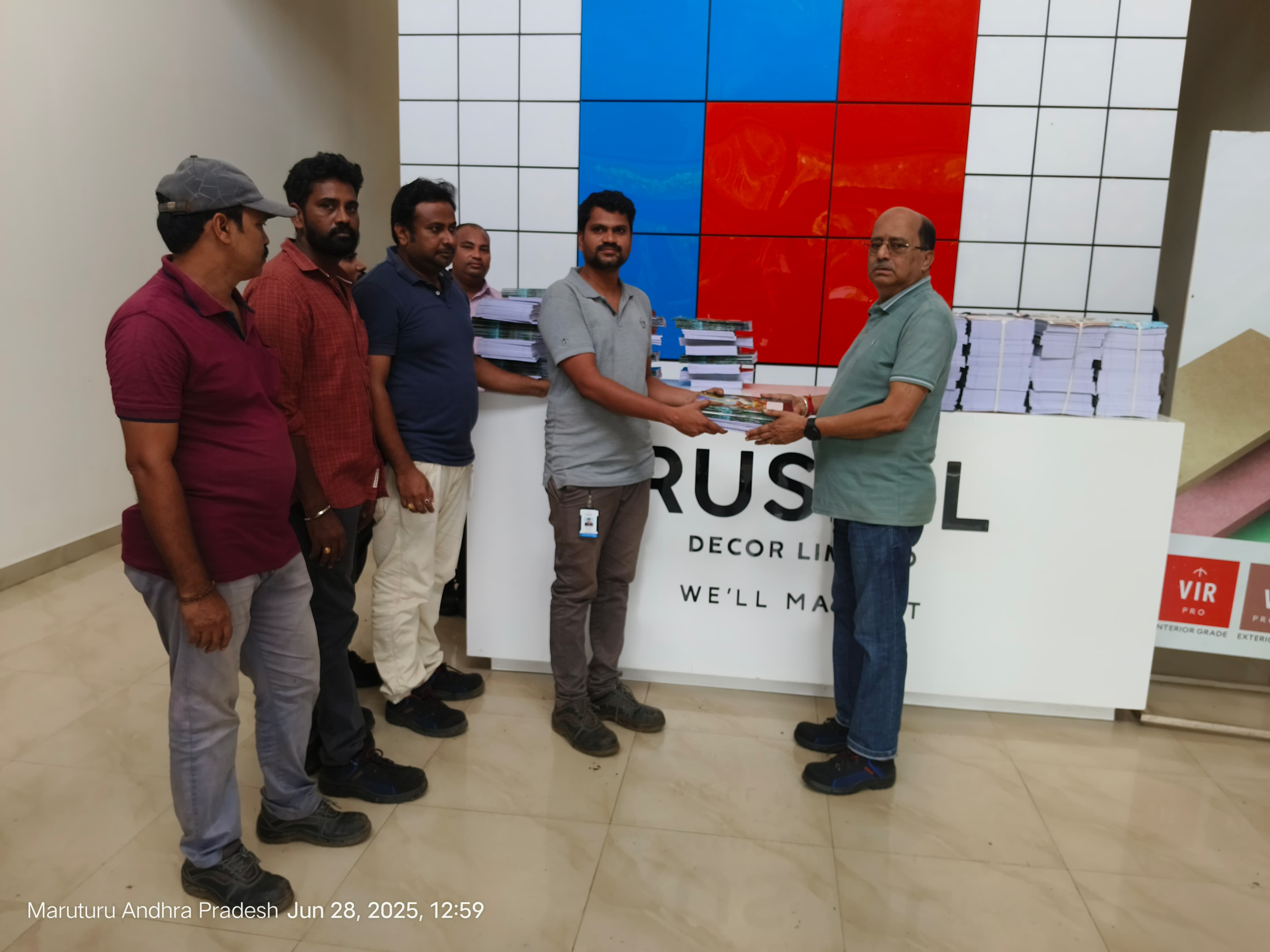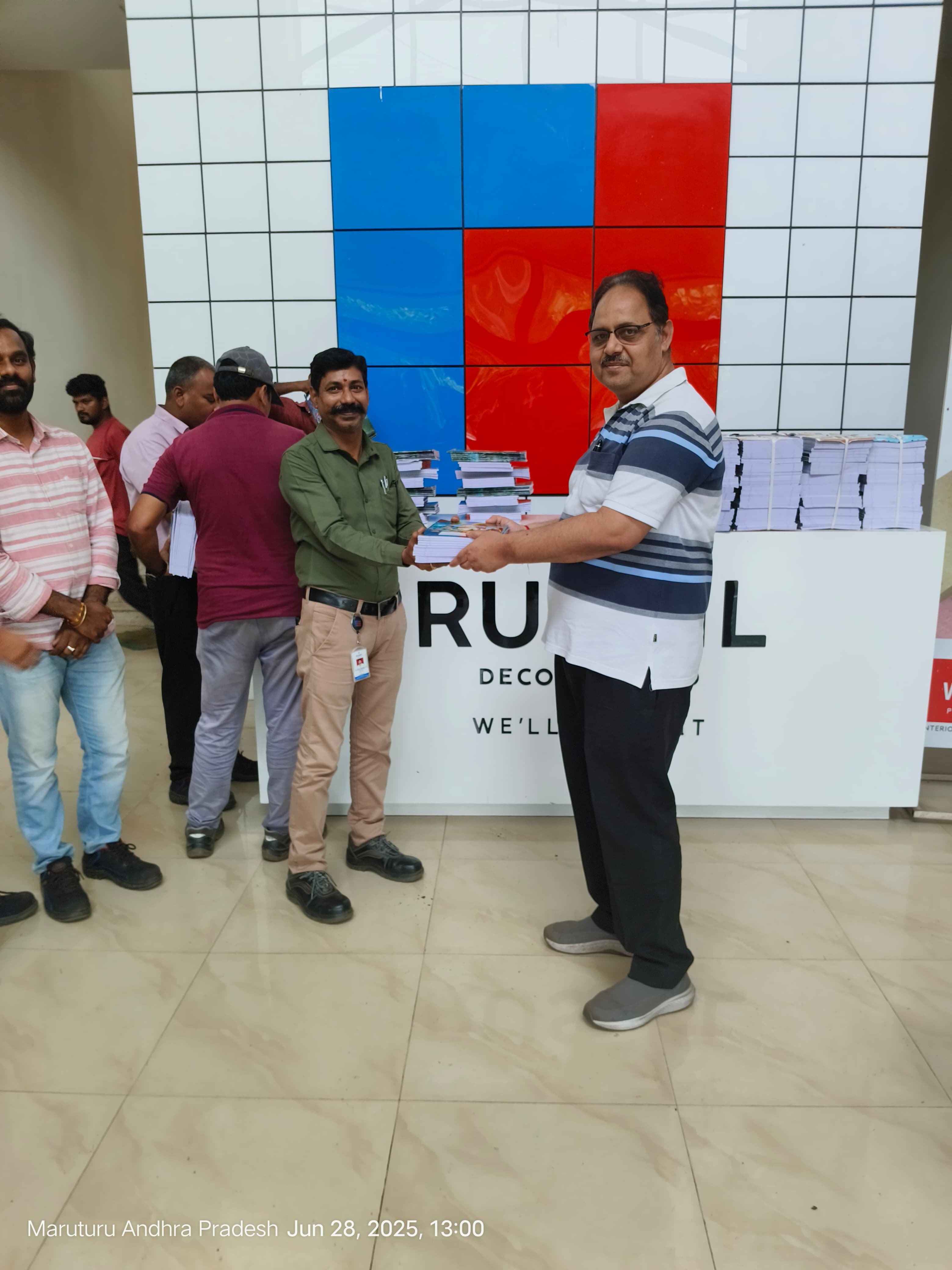 Rushil Decor is committed to community development through its CSR initiative, distributing notebooks to schools and factory locations to support the educational growth of children in nearby communities.